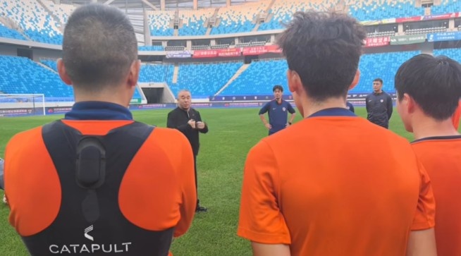 拜托大家,团结一致,劲往一处使,一动全动,我们的信心来自把对手研究细了、分析细了,每个人在自己的位置上发挥出应有的水平,我想我们一定会取得胜利。足球是圆的,不管再强的队伍,我们有我们的优势,把我们的优势发挥出来。谢谢大家,拜托大家了,代表青岛球迷、代表集团拜托大家。”