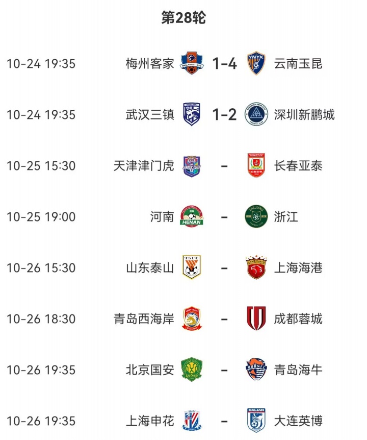 2025-10-26 00:57:52中超积分榜:亚泰19分仍居降级区!梅州20分,海牛18分明日战国安