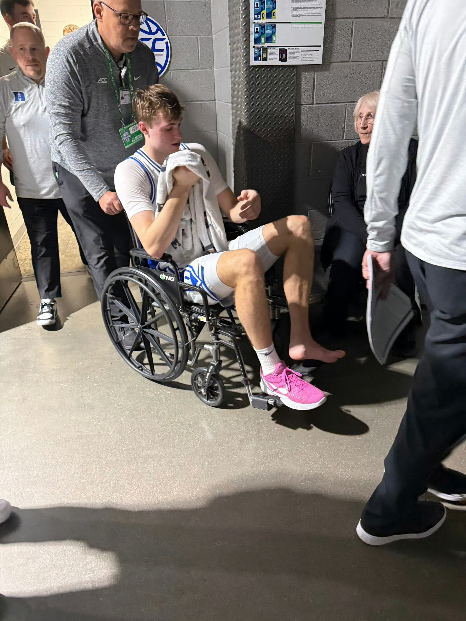 03月14日讯 杜克大学球星、2025年NBA选秀状元大热弗拉格在今天的ACC锦标赛八强赛中扭伤了左脚踝。