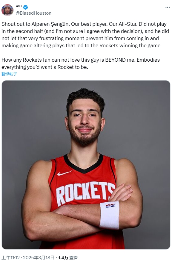 赛后,火箭的一位球迷评论道:“向申京致敬。他是我们最好的球员,我们的全明星。尽管下半场没有上场(我对此决定并不完全赞同),但他并没有让这一令人沮丧的时刻影响自己,他在关键时刻挺身而出,为火箭赢得了比赛。任何火箭球迷如果不爱这个小伙子,那真是难以理解。他完美地展现了火箭球员应有的所有品质。”